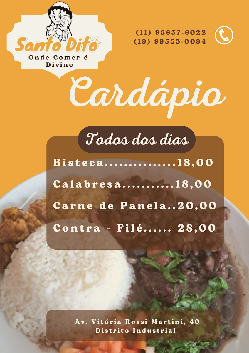 Introducing Restaurante Santo Dito, a culinary gem nestled in the heart of Indaiatuba, Brazil. Located on Av. Vitória Rossi Martini, this restaurant offers a delightful menu brimming with flavors that transport you straight to the heart of home-cooked goodness. Customers rave about the delicious tilapia a parmegiana, expertly prepared and served fresh, showcasing the kitchen's meticulous attention to detail.